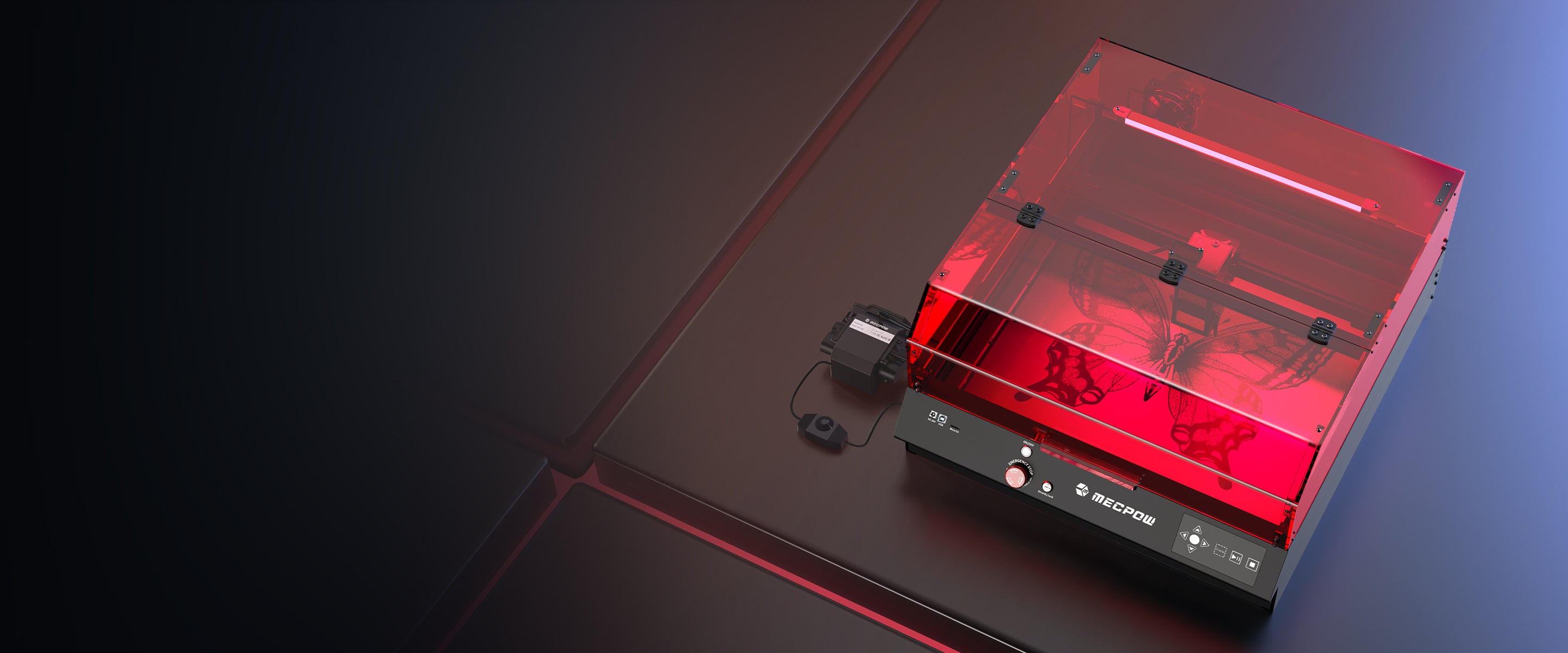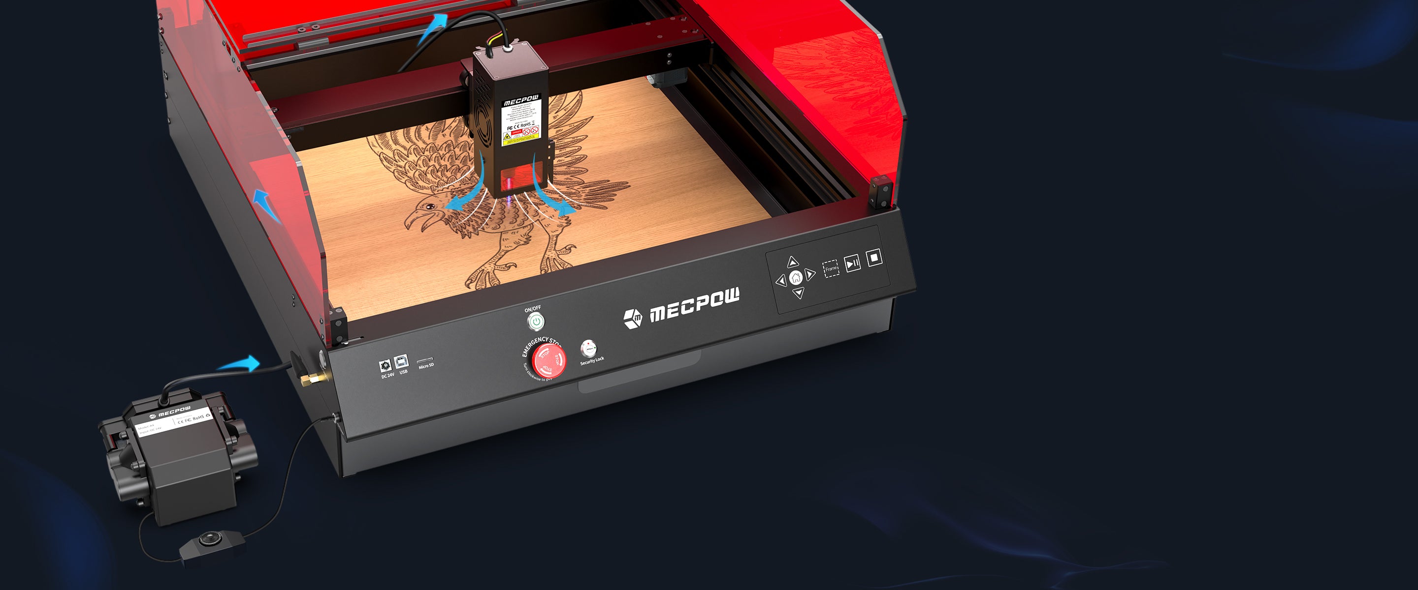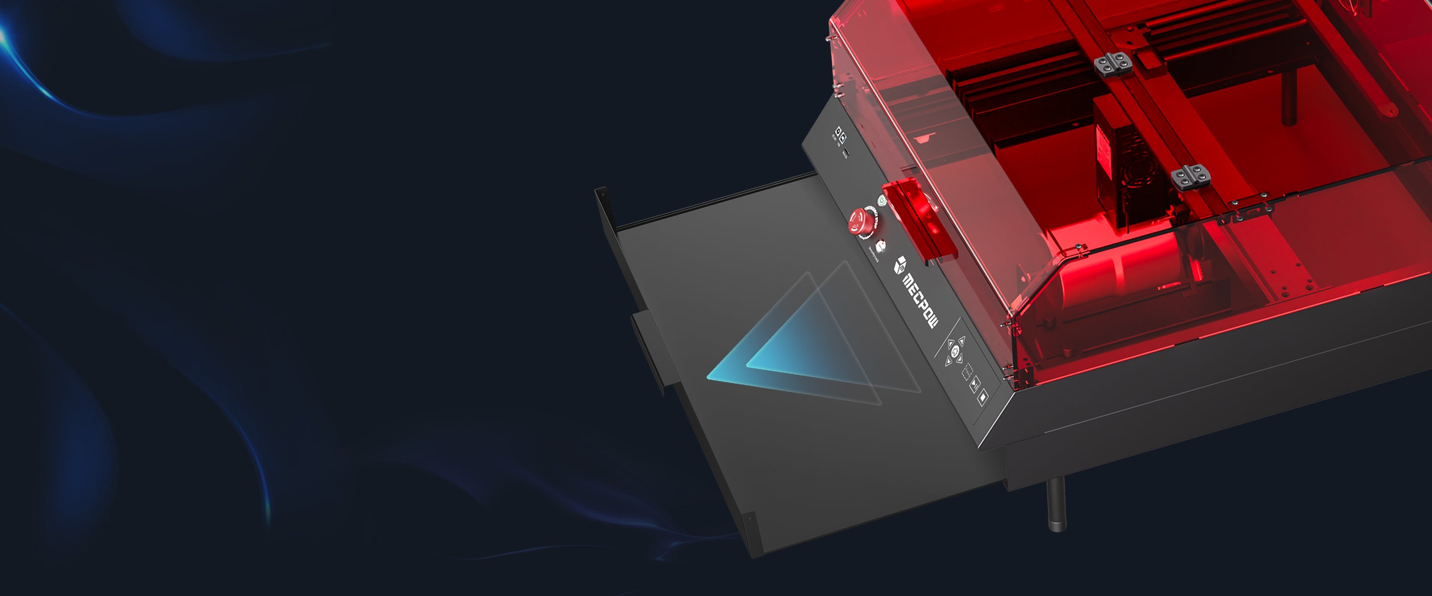 Das geschlossene Design des Mecpow X4 Pro Lasergravierers sorgt für umfassenden Schutz und eine saubere und ruhige Umgebung, die den Benutzer vor Lärm und Rauch schützt. Der leistungsstarke Lüfter optimiert den internen Luftstrom, um schädlichen Rauch und Partikel effektiv herauszufiltern, Verbrennungen zu verhindern und eine sicherere und angenehmere Umgebung für die Gravur innerhalb des Gehäuses zu schaffen.