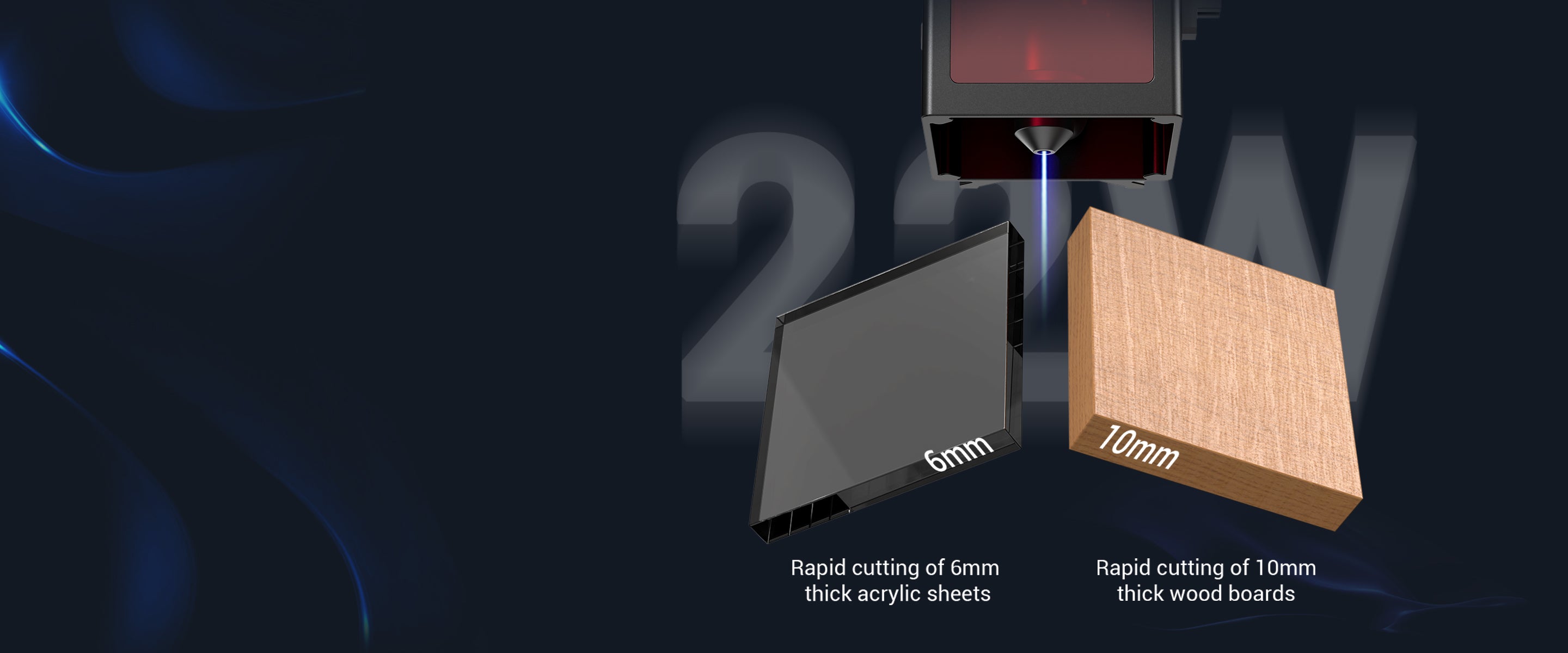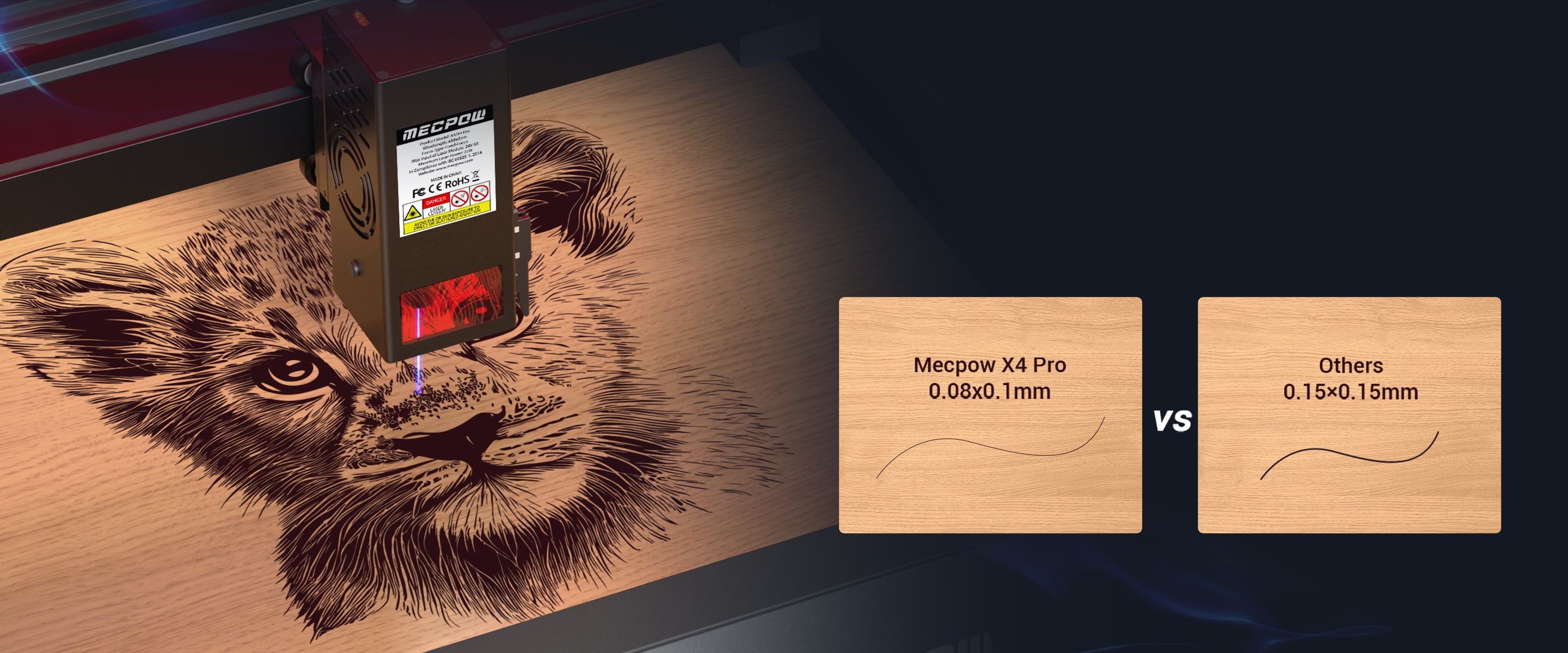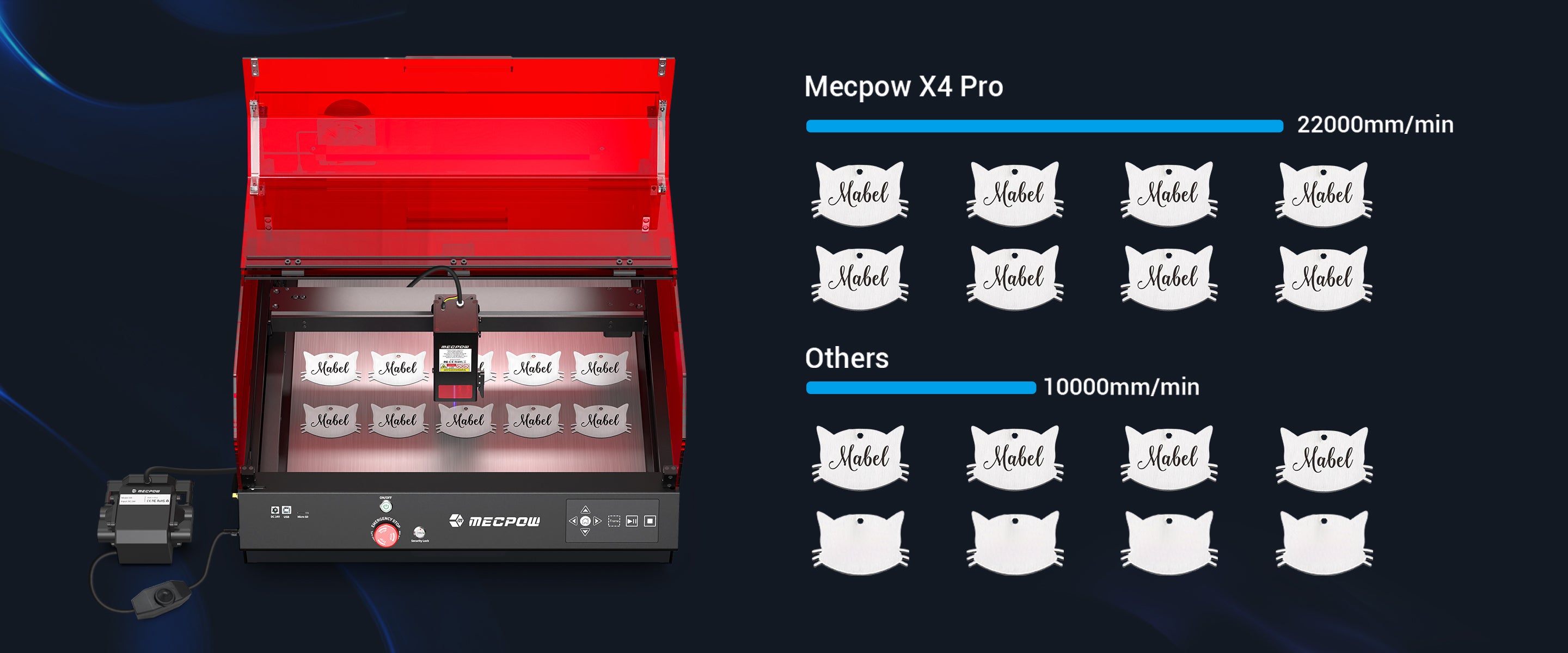 Mit einer hohen Laserleistung von 22 W ermöglicht der Lasergravierer Mecpow X4 Pro das Schneiden dickerer Materialien und bietet stabile und umfangreiche Gravuren. Dank einer bemerkenswerten maximalen Gravurgeschwindigkeit von bis zu 22.000 mm/min und einem ultrafeinen Laserpunkt von 0,08 mm × 0,1 mm verbringen Sie weniger Zeit mit der Steigerung Ihrer Produktivität bei hoher Genauigkeit.