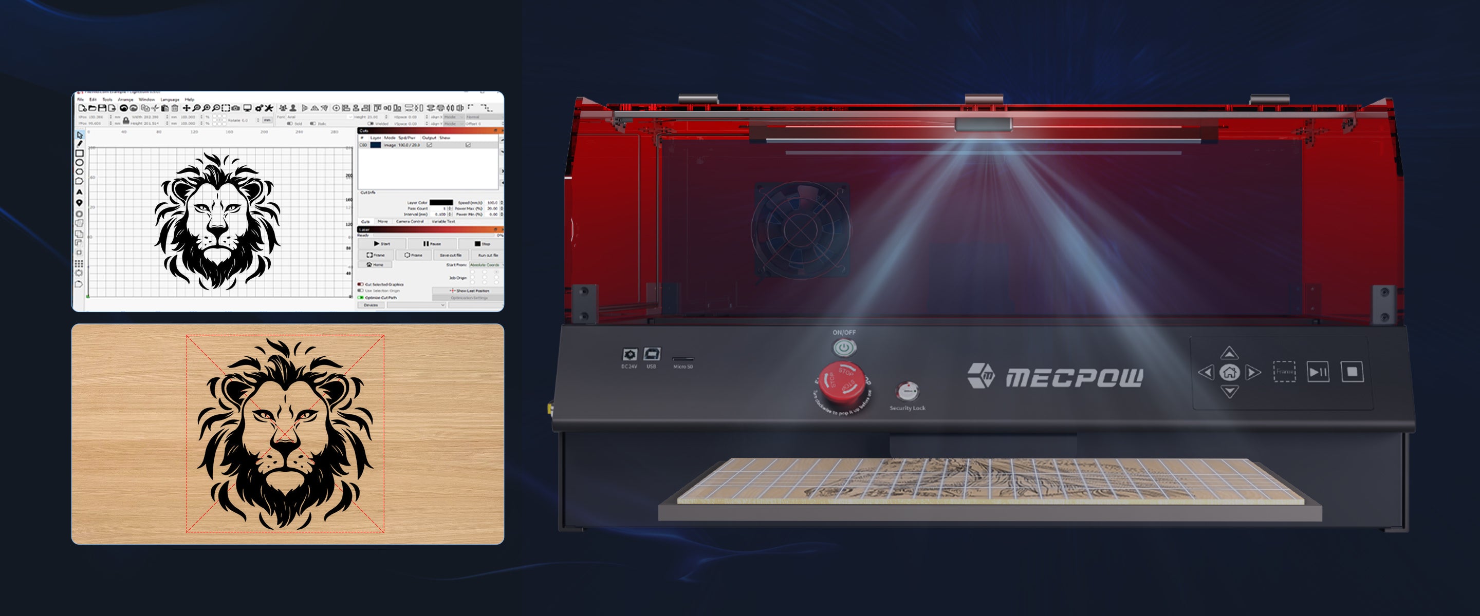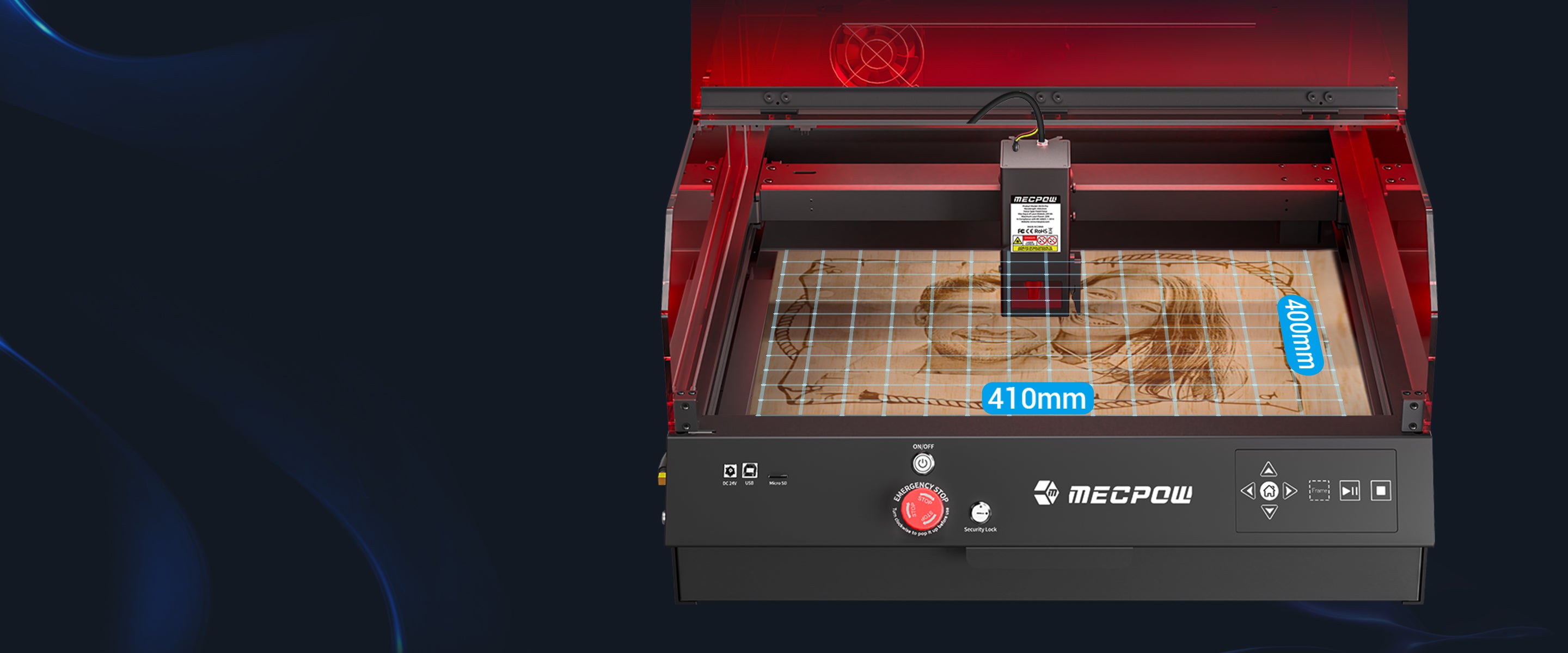 Der Gravierer verfügt über eine großzügige Gravurfläche von 410×400 mm (16,1×15,7 Zoll) und bietet damit unbegrenzte Gravurmöglichkeiten. Mit der Möglichkeit, Materialien wie Holz, Acryl, Glas, Metall, Stoff, Bambus, Kunststoff, Leder und sogar Lebensmittel zu gravieren, bietet der Mecpow X4 Pro-Lasergravierer eine breite Palette an Optionen für personalisierte Kreationen.