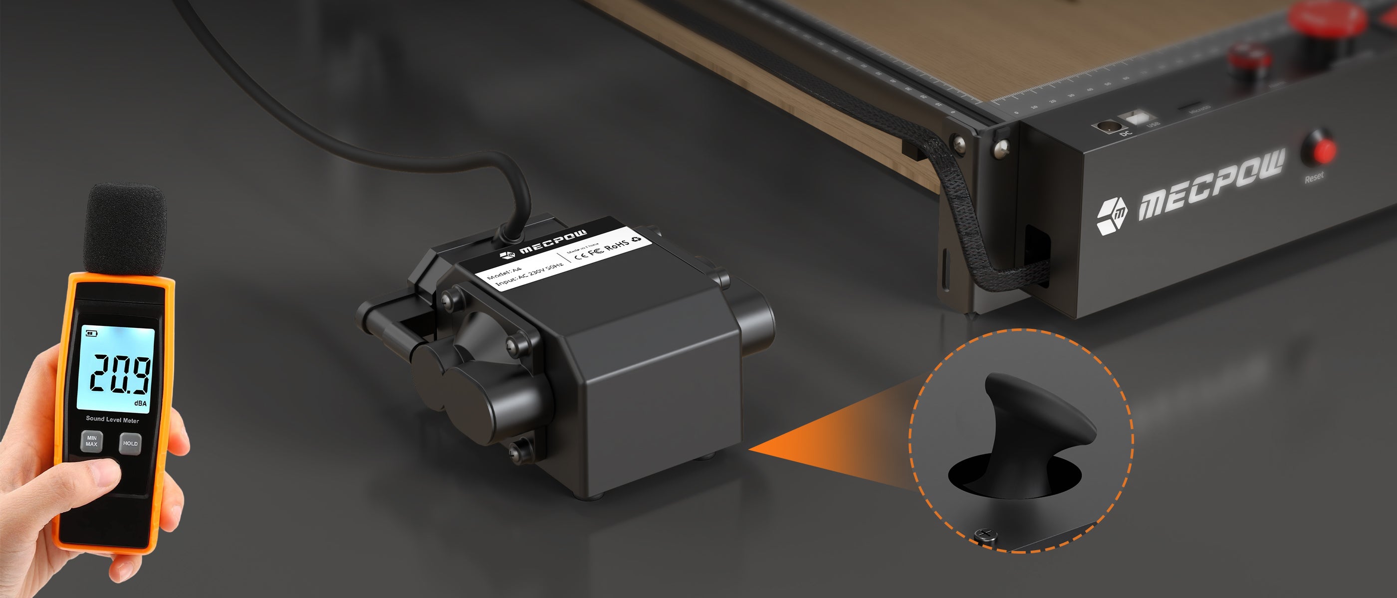 En soufflant 30 litres de gaz par minute, la pompe à air Mecpow A4 est capable de souffler la fumée chaude et la poudre, abaissant efficacement la température de surface de l'objet gravé, ce qui évite la distorsion et la décoloration causées par les températures élevées et garantit des lignes lisses, des motifs complets, ainsi que des surfaces de matériaux propres.