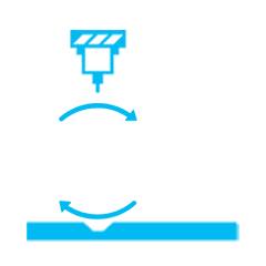 Les deux axes peuvent coulisser de 6 à 88 mm. Le rouleau rotatif est doté de quatre supports de rehaussement permettant d'augmenter la hauteur de gravure pour des cylindres plus grands.