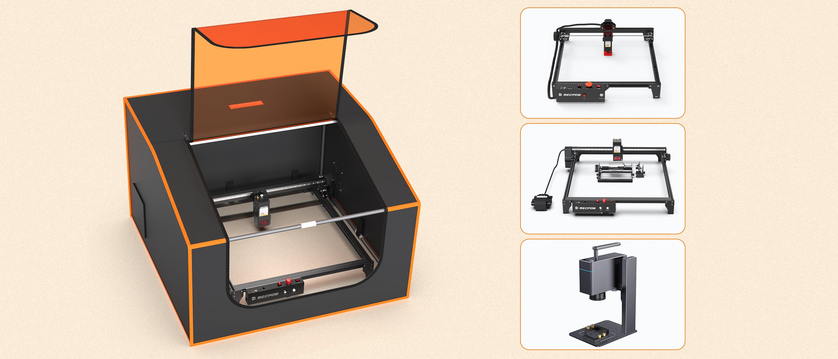 L'ampio spazio del nostro alloggiamento per incisore laser, che misura 37,4x36,6x18,1 pollici (950x930x460 mm), ha dimostrato di essere in grado di offrirti il massimo comfort e praticità. Può ospitare incisori laser fino a una certa dimensione, rendendolo uno strumento versatile e affidabile per le tue esigenze di incisione.