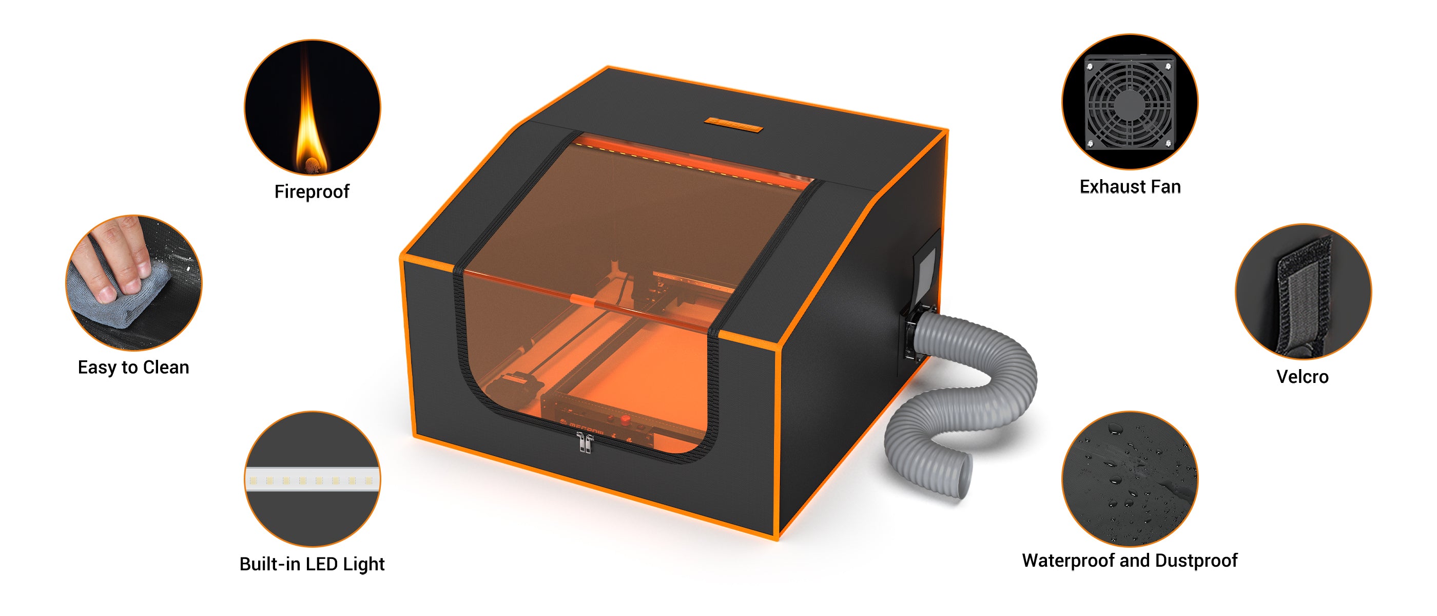 La custodia protettiva per incisione Mecpow FC2 è progettata per isolare in modo efficace e rapido grandi quantità di fumo e odori sgradevoli prodotti durante il processo di incisione. Le sue grandi dimensioni, la ventola robusta e il tubo di scarico ignifugo assicurano che la qualità dell'aria circostante rimanga fresca e pulita. Ti aiuta a incidere comodamente senza fumo o odori pungenti.