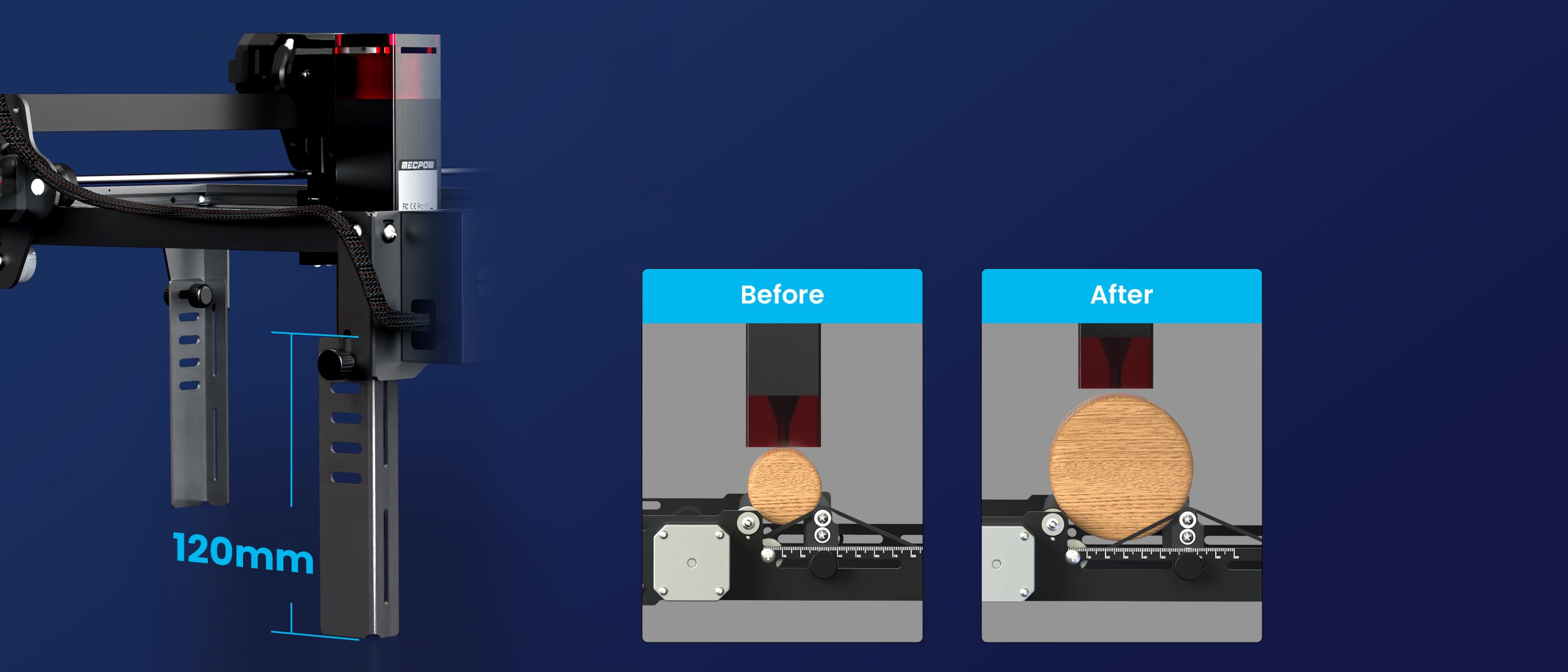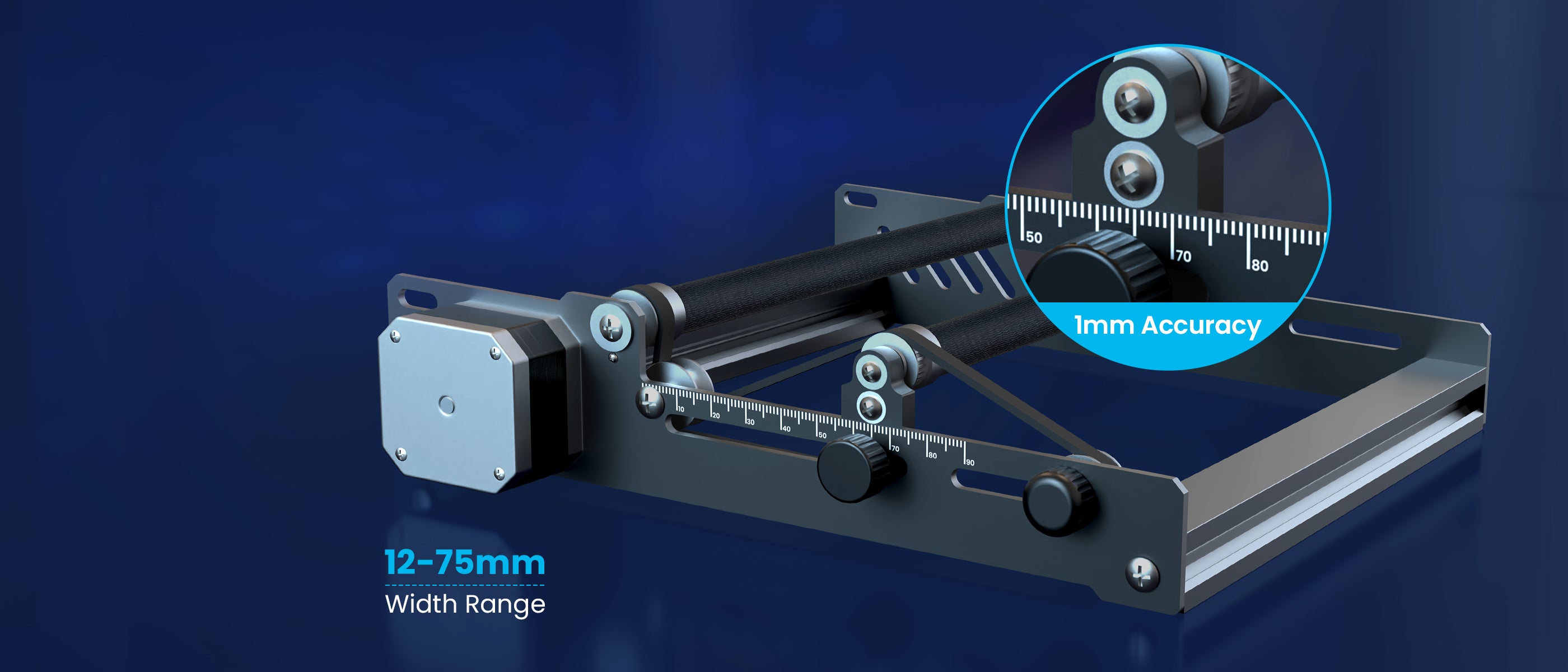 L'accessorio rotante laser di Mecpow è dotato di un'unità di regolazione precisa da 1 mm, che offre una flessibilità eccezionale nella regolazione della larghezza. A differenza degli accessori rotanti basati su ingranaggi, il nostro design elimina le limitazioni imposte dagli ingranaggi e si adatta perfettamente a vari diametri durante l'incisione di oggetti cilindrici. Questa libertà regolabile non solo migliora la stabilità, ma consente anche modelli di incisione dettagliati, offrendo un'esperienza di lavorazione senza pari.