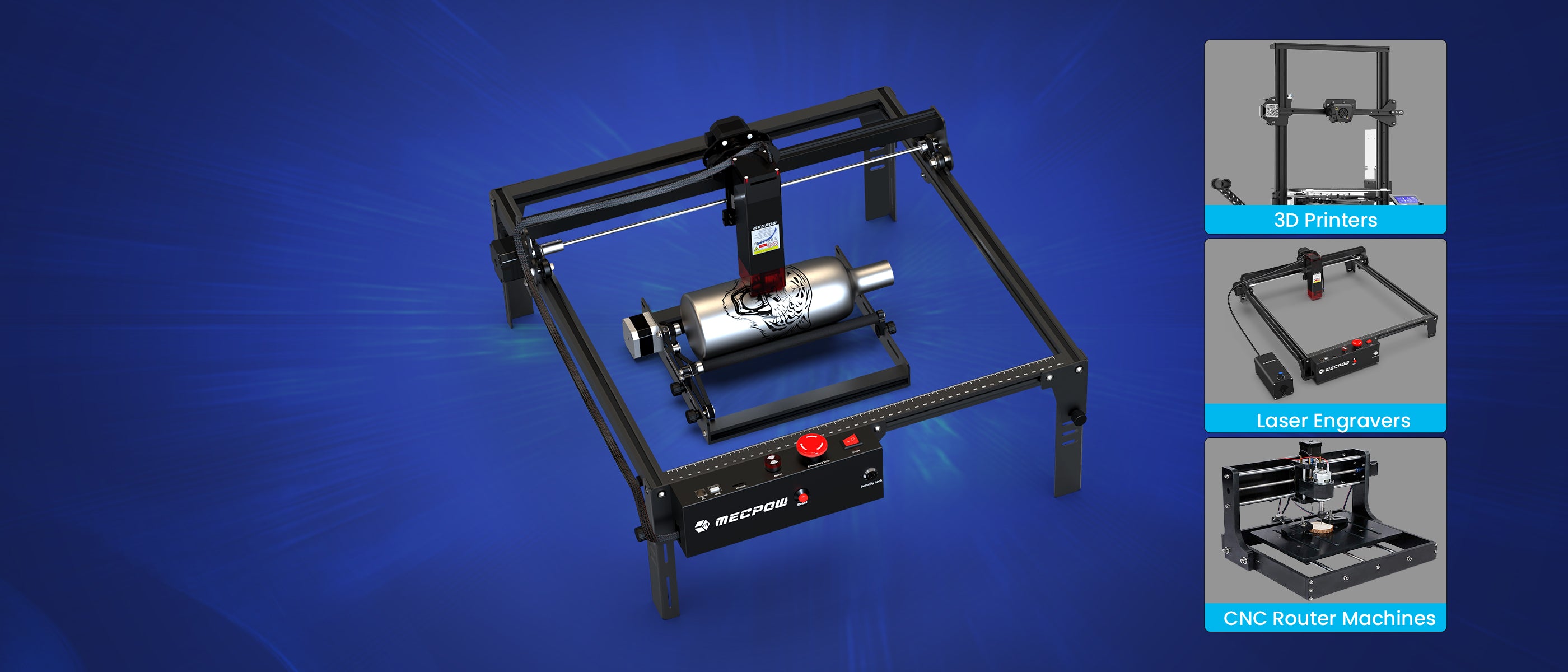 Il rullo rotante Mecpow è compatibile con quasi tutte le stampanti 3D, le fresatrici CNC e gli incisori laser disponibili sul mercato.