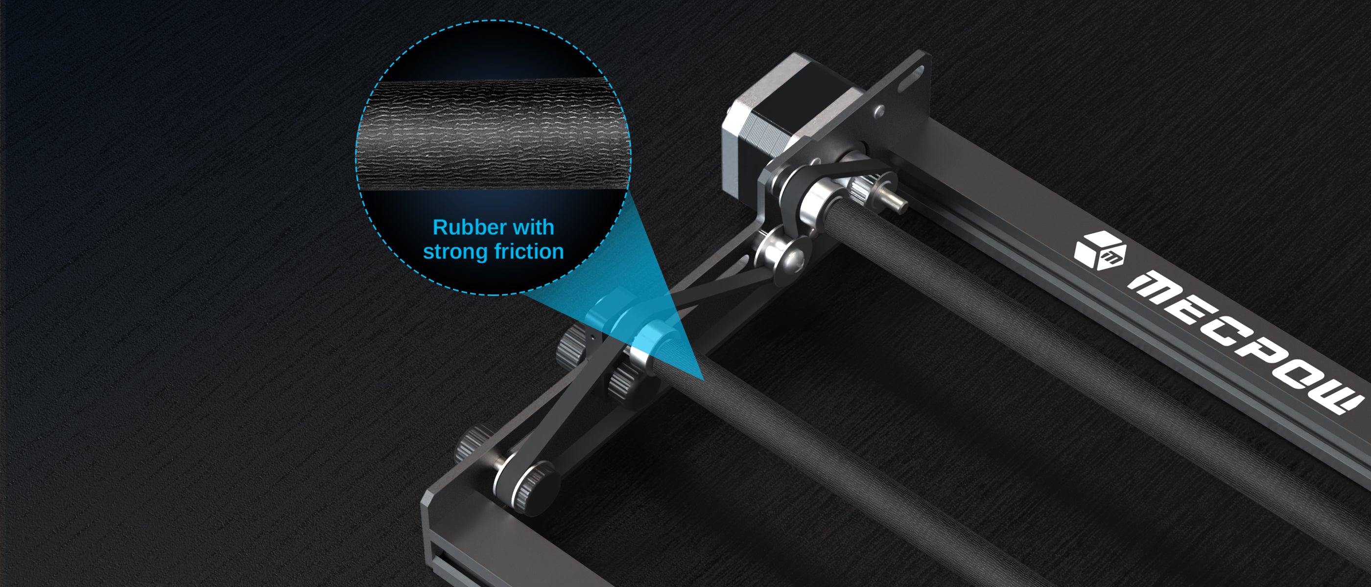 Il Mecpow G3 Pro è dotato di 4 staffe di sollevamento, che consentono una dimensione di incisione maggiore. Il rullo rotante ha un'elevata applicabilità. È in grado di funzionare con il 95% delle macchine per incisione sul mercato senza problemi.