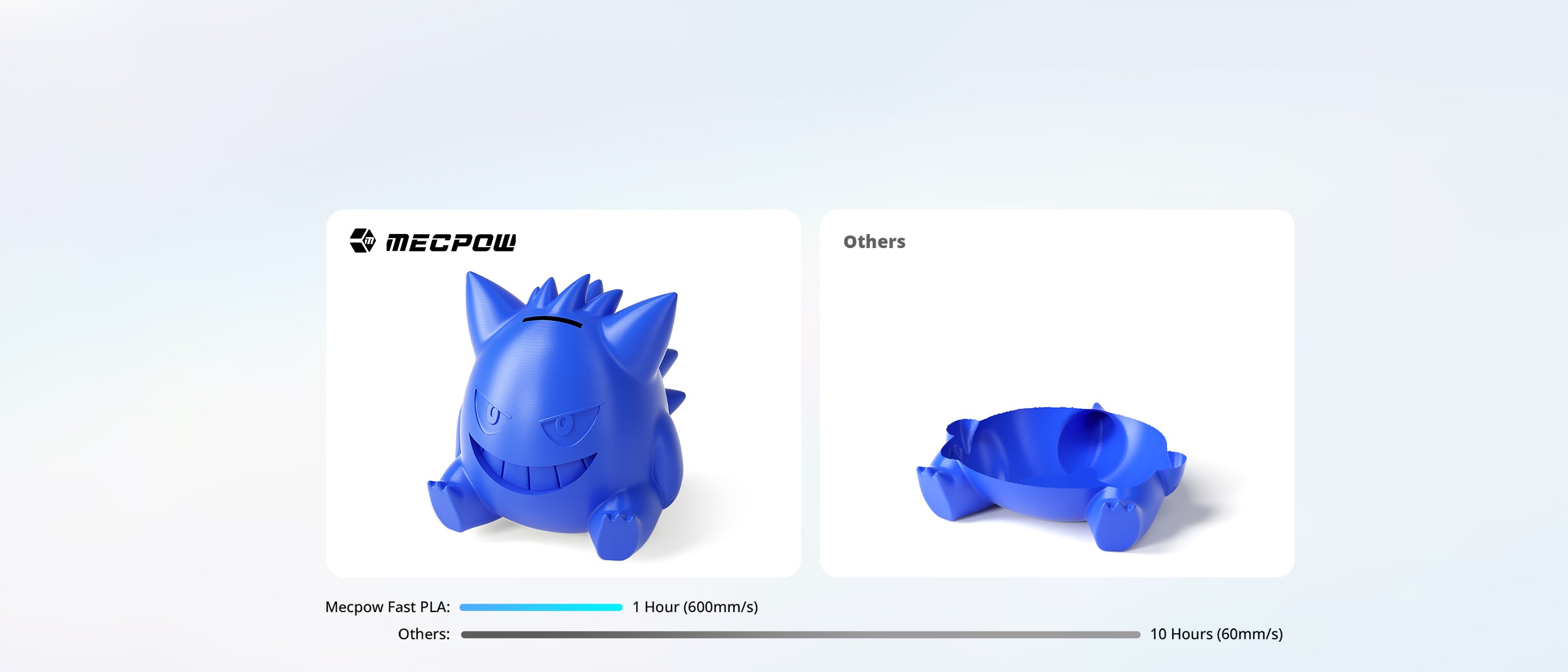 Mecpow 3D printing filaments can achieve impressive printing speeds ranging from 50 to 600 mm/s, providing an exceptionally smooth and efficient printing experience while striking a perfect balance between speed and stability. PLA+ is primarily made from cornstarch and lactic acid, which is produced through starch fermentation during the wet milling of corn or other plants. It is a biologically degradable and renewable material.