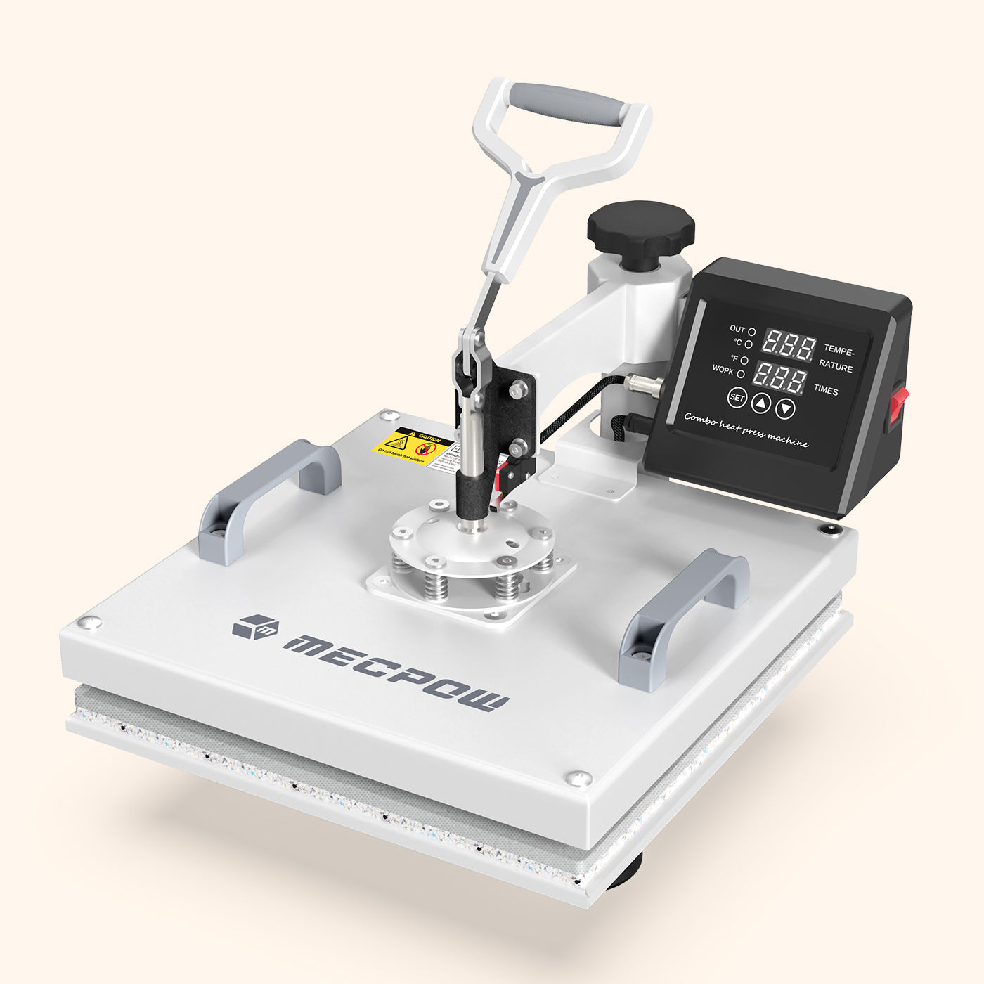 Dotata di un sistema di controllo digitale aggiornato, la pressa a caldo Mecpow MP-3881 assicura impostazioni precise di temperatura e tempo per un funzionamento senza sforzo. Il display LED a doppio schermo consente un facile monitoraggio e regolazione. La scatola di controllo della temperatura integrata, ottimizzata per il miglioramento interno, assicura una regolazione precisa della temperatura.