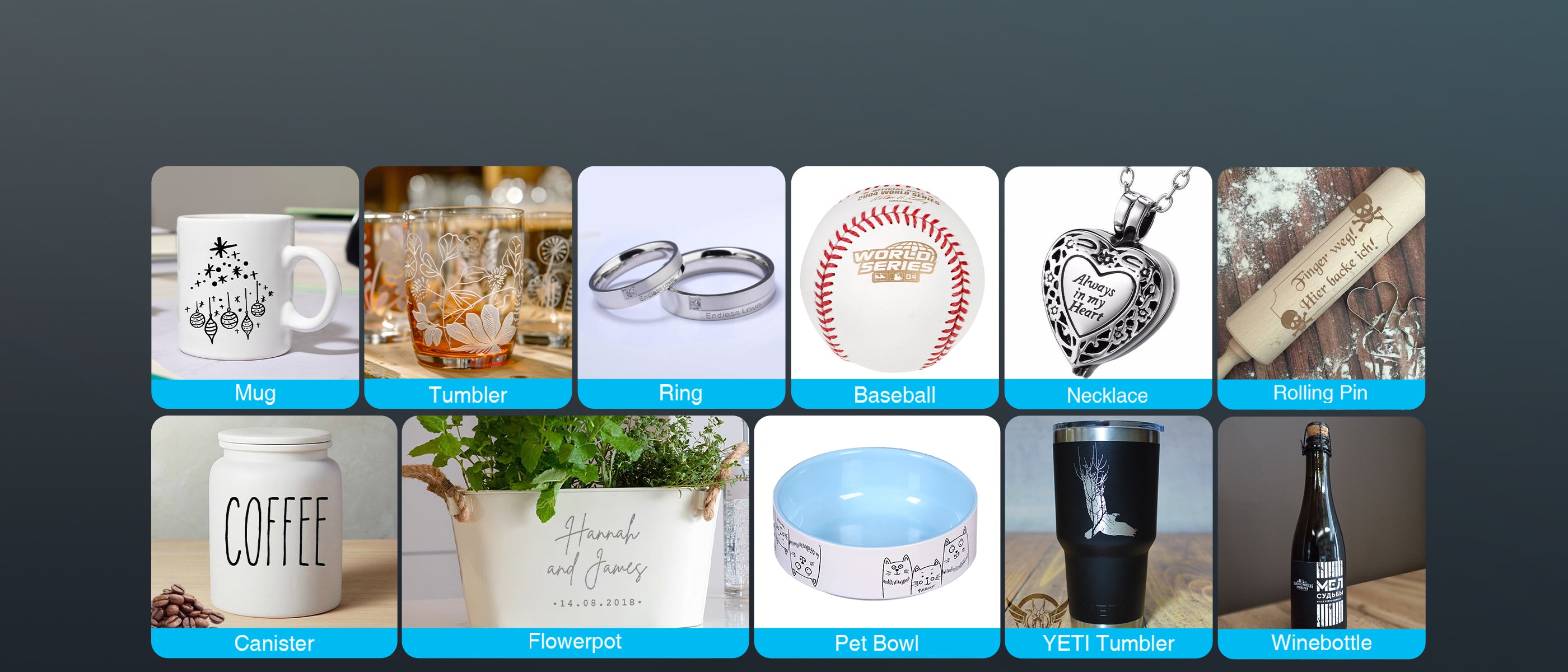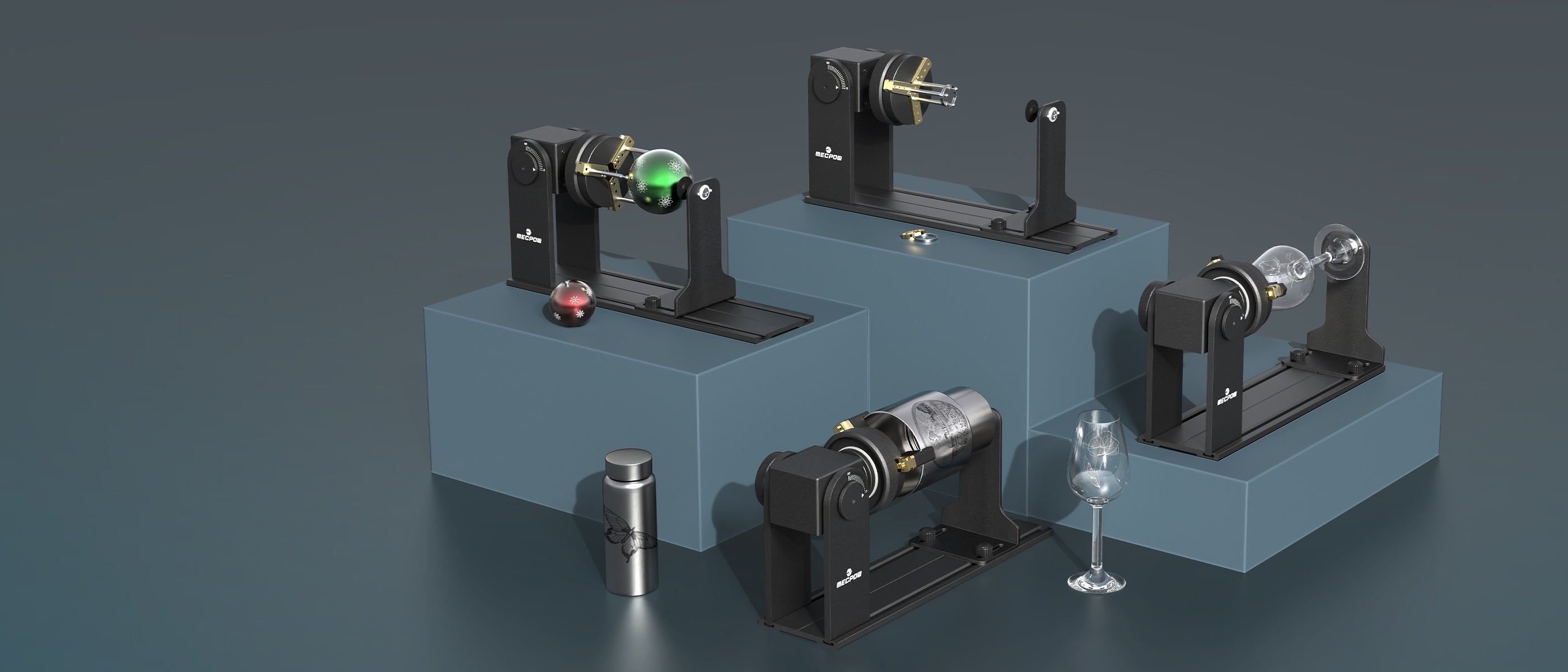 Thanks to the 3 sets of jaws and different ways of using them: internal clamping, external clamping, and stud jaw clamping, the rotary roller makes it possible to engrave various objects of different shapes and sizes, such as baseballs, mugs, tumblers, etc.