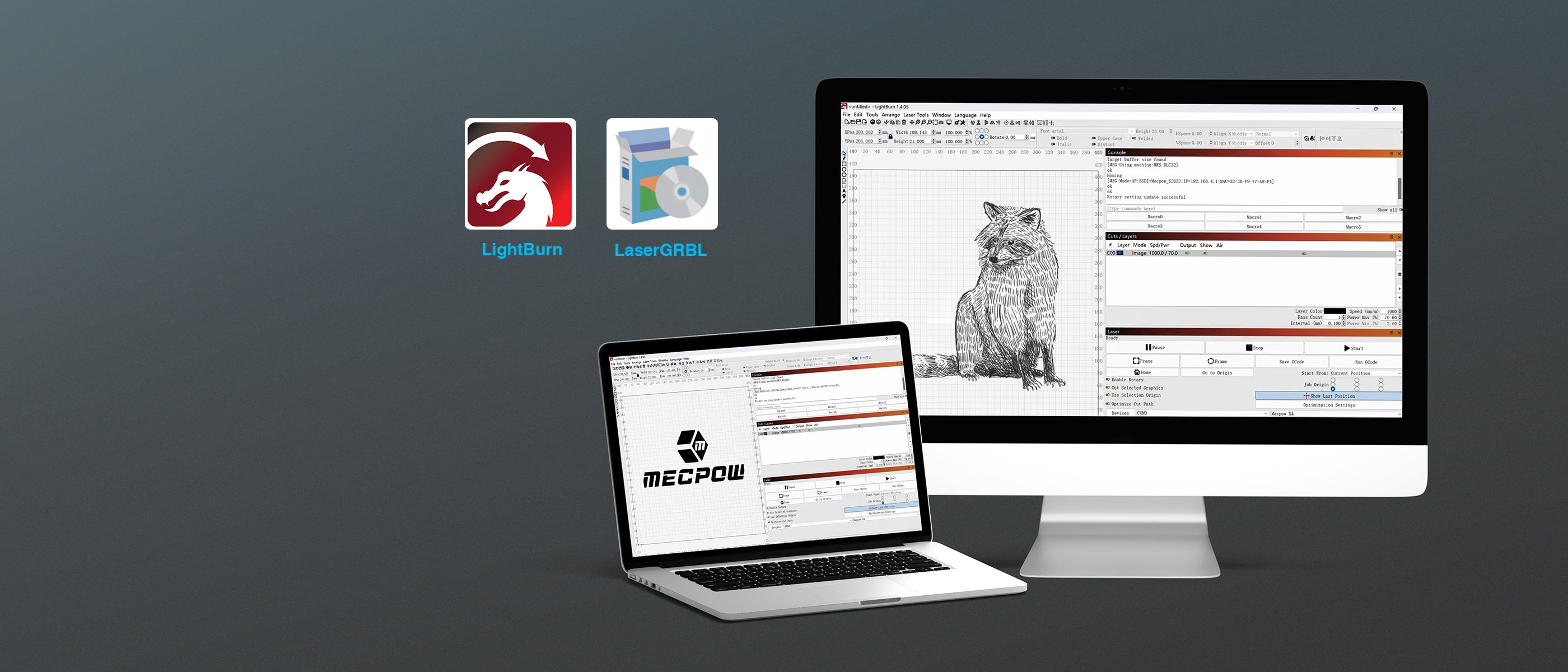 The rotary chunk is compatible with all Mecpow engravers and 95% of laser engraving machines on the market. It can be connected to software like LightBurn and LaserGRBL for added convenience.