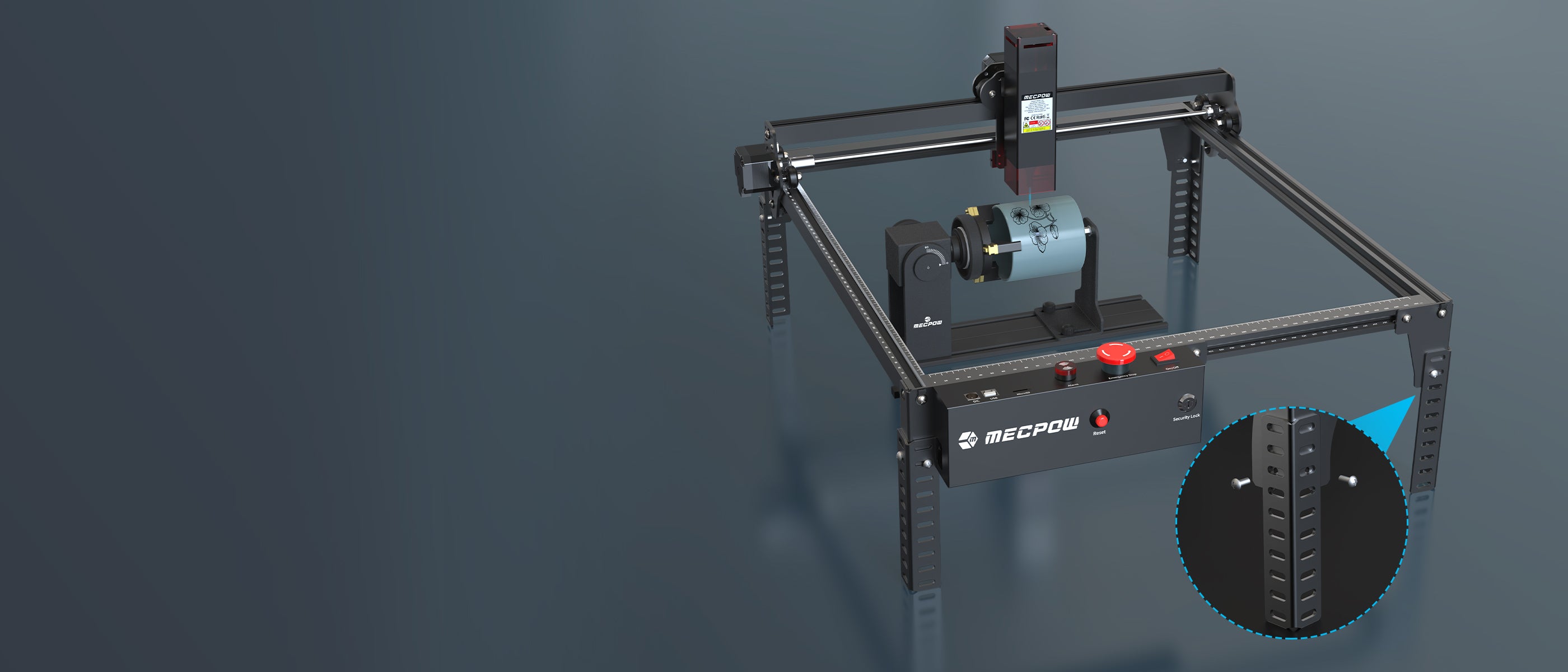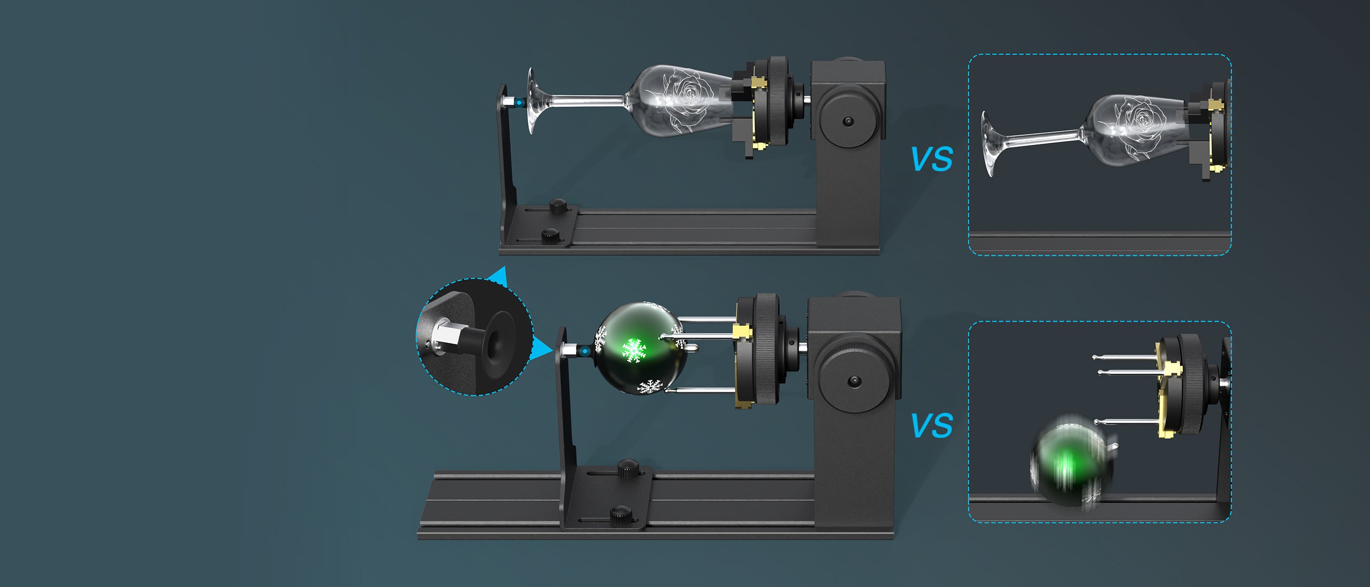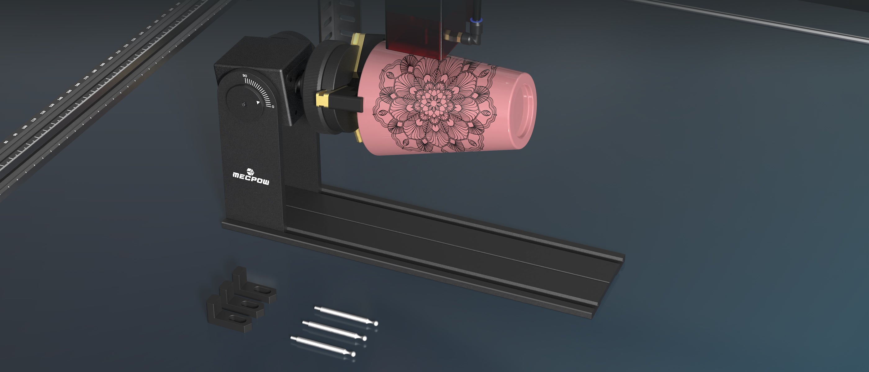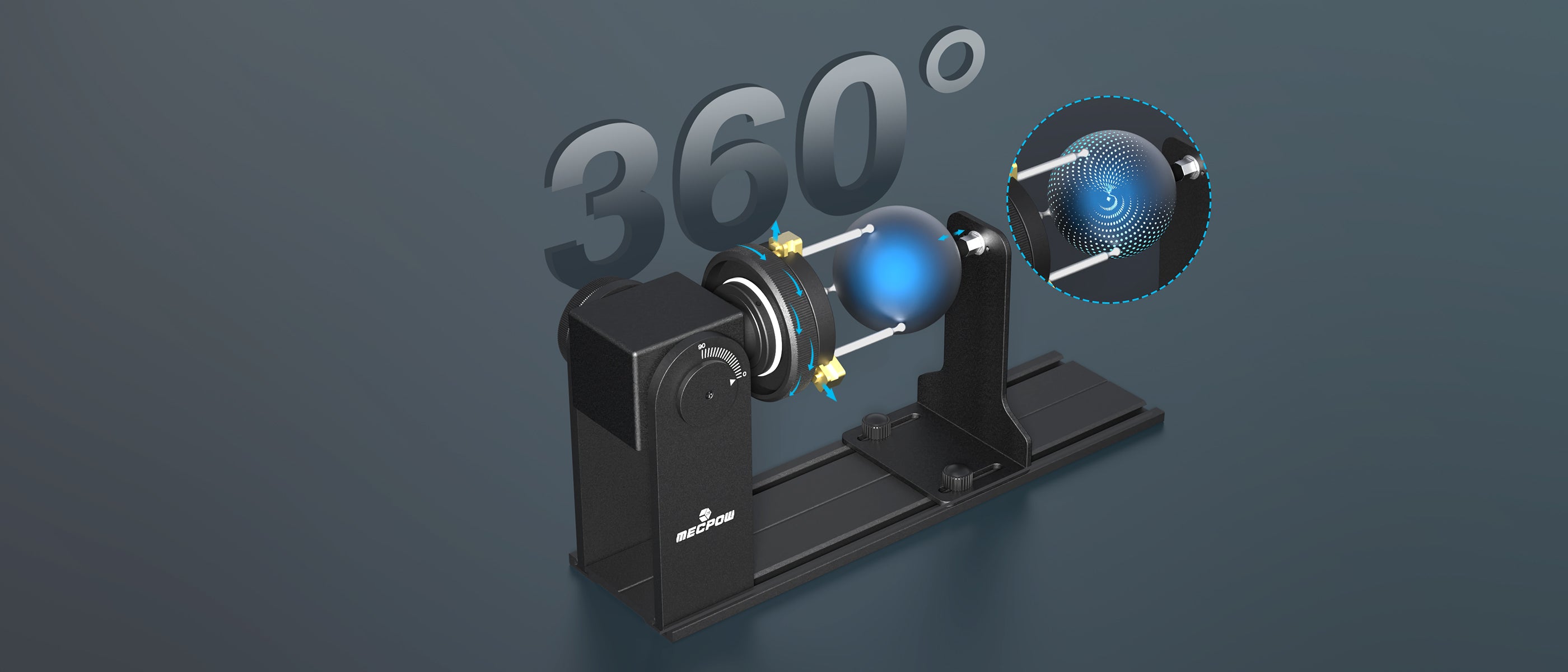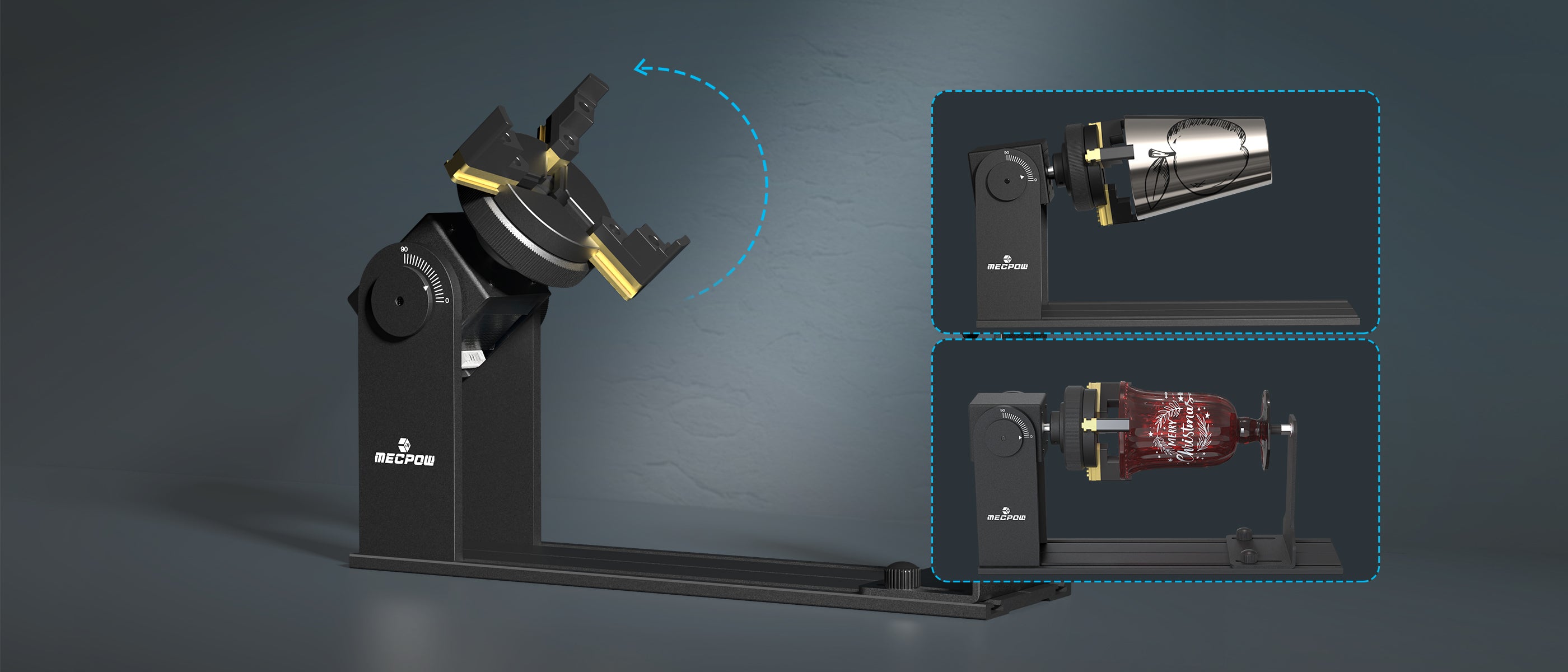 The Mecpow rotary roller module features an adjustable angle of 90° to engrave on distinctive objects, such as beverage cans, baseballs, goblets, etc. It is designed with an angle line for easy viewing and precise calibration. The 360° rotary chunk enhances the stability and accuracy of the engraving. You could create ingenious engravings unconventionally.