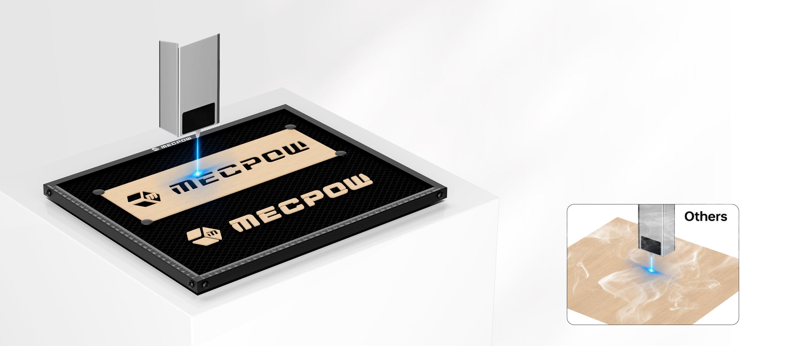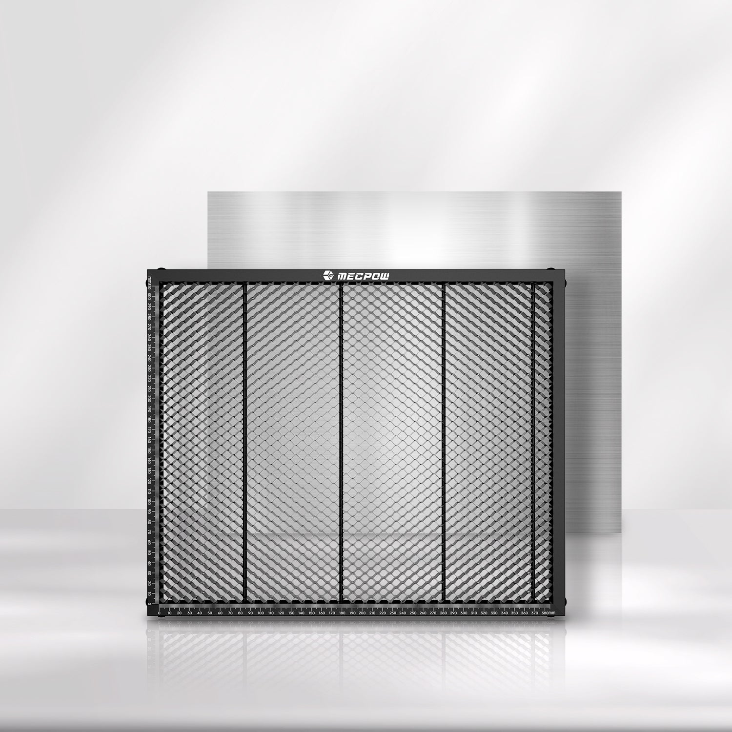 The Mecpow honeycomb working table features a unique hollow, open structure made from aluminum alloy. This design promotes optimal airflow, reduces smoke buildup, and allows for efficient heat dissipation—resulting in cleaner, more precise cuts with minimal burn marks. Enjoy improved engraving accuracy and higher cutting efficiency for a flawless finish.