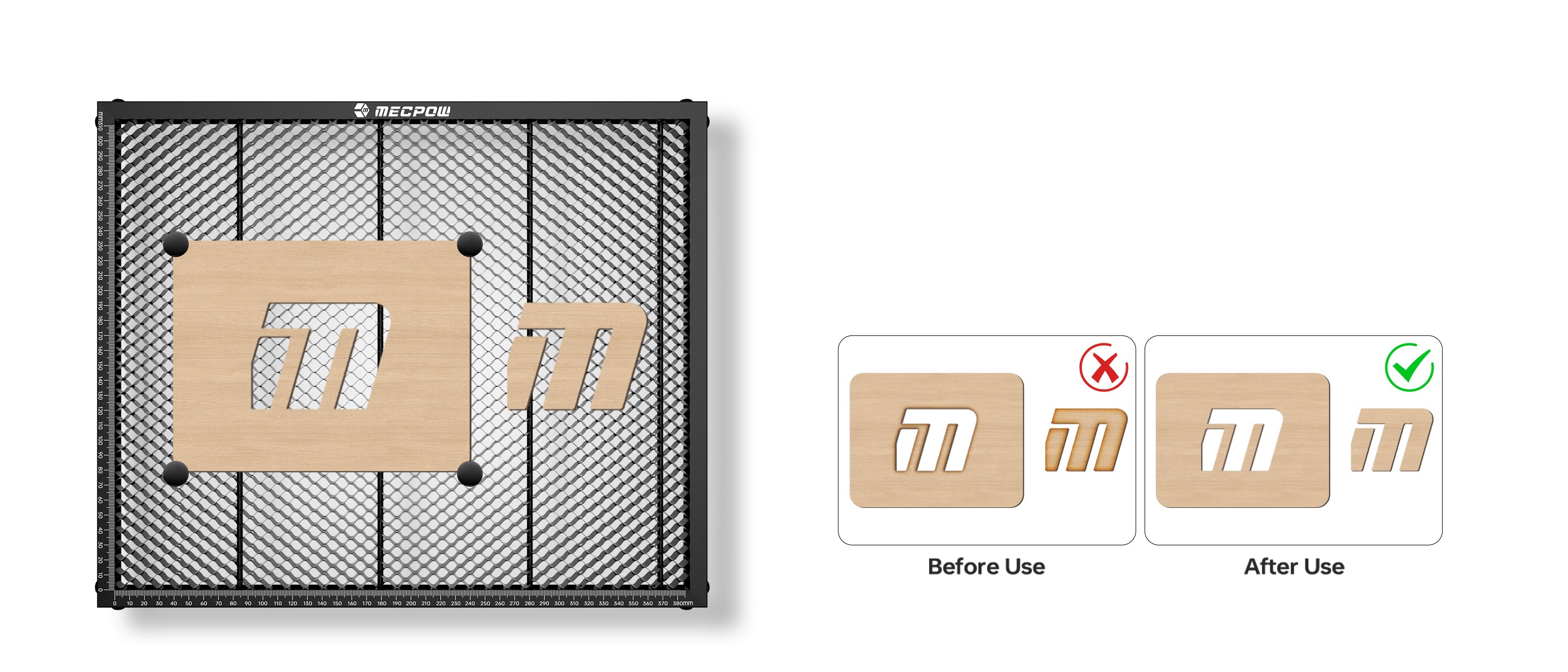 Designed with accurate measurement markers along two edges, the Mecpow honeycomb panel makes it easy to align and position your materials for laser engraving. This thoughtful feature improves placement accuracy and boosts workflow efficiency.