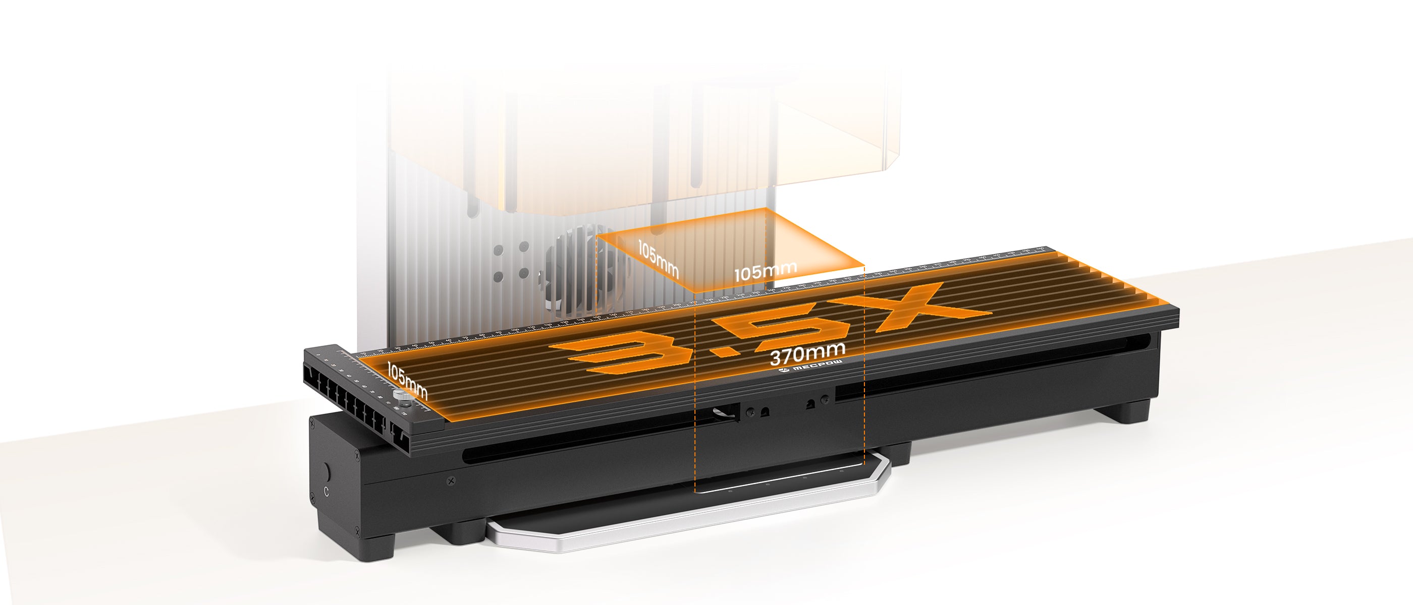 The Mecpow G1 slide extension offers a spacious working area of 370 x 105mm, expanding your workspace by 3.5 times. This enables you to effortlessly handle large-scale engraving and cutting projects and meet your batch production needs. With the G1, you will boost your productivity, allowing you to unleash your creativity and achieve high-efficiency creation.