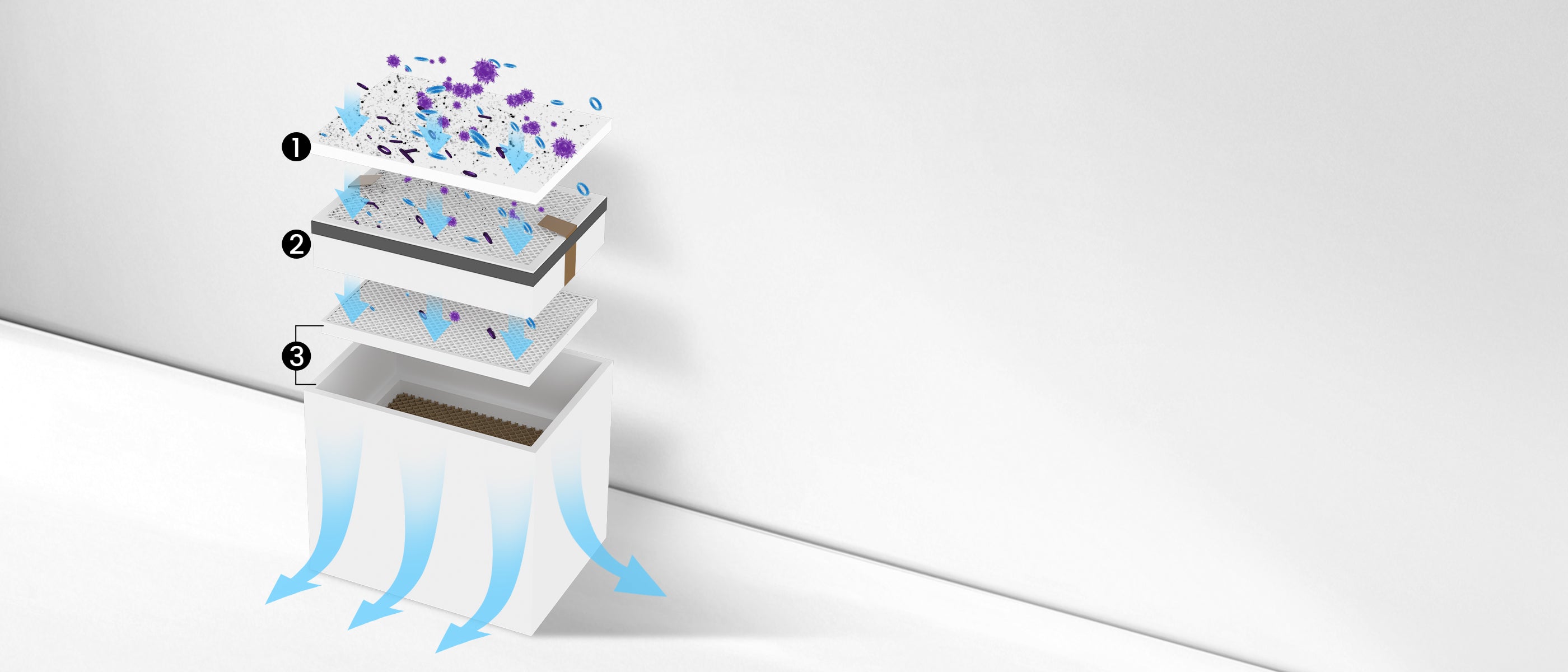 3-Layer Filtration: Pre-Filter, Medium HEPA Filter, Activated Carbon Filter