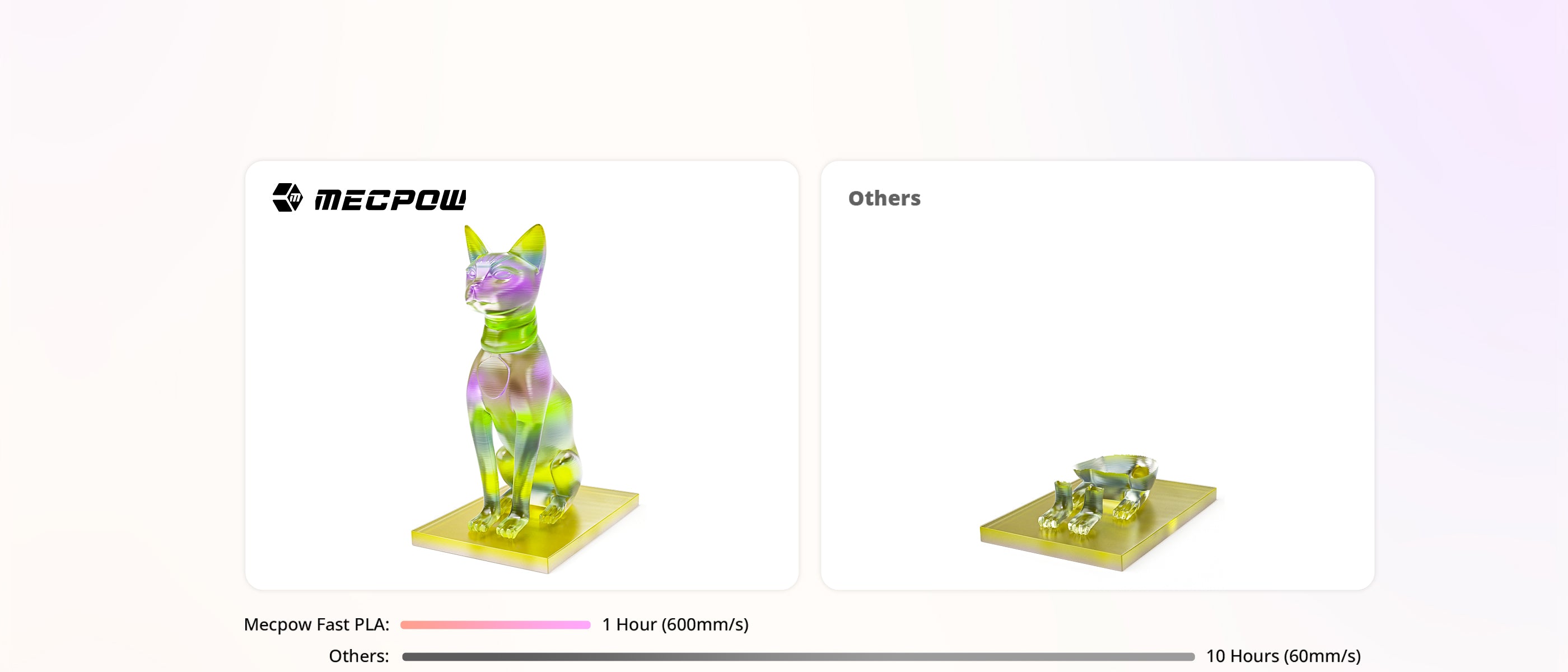 Mecpow 3D printing filaments can achieve impressive printing speeds ranging from 30 to 600 mm/s, providing an exceptionally smooth and efficient printing experience while striking a perfect balance between speed and stability. With an enchanting color collocation, the PETG transparent rainbow 3D printing filaments adapt effortlessly to any project or style, enabling users to create a wide array of imaginative and innovative designs.
