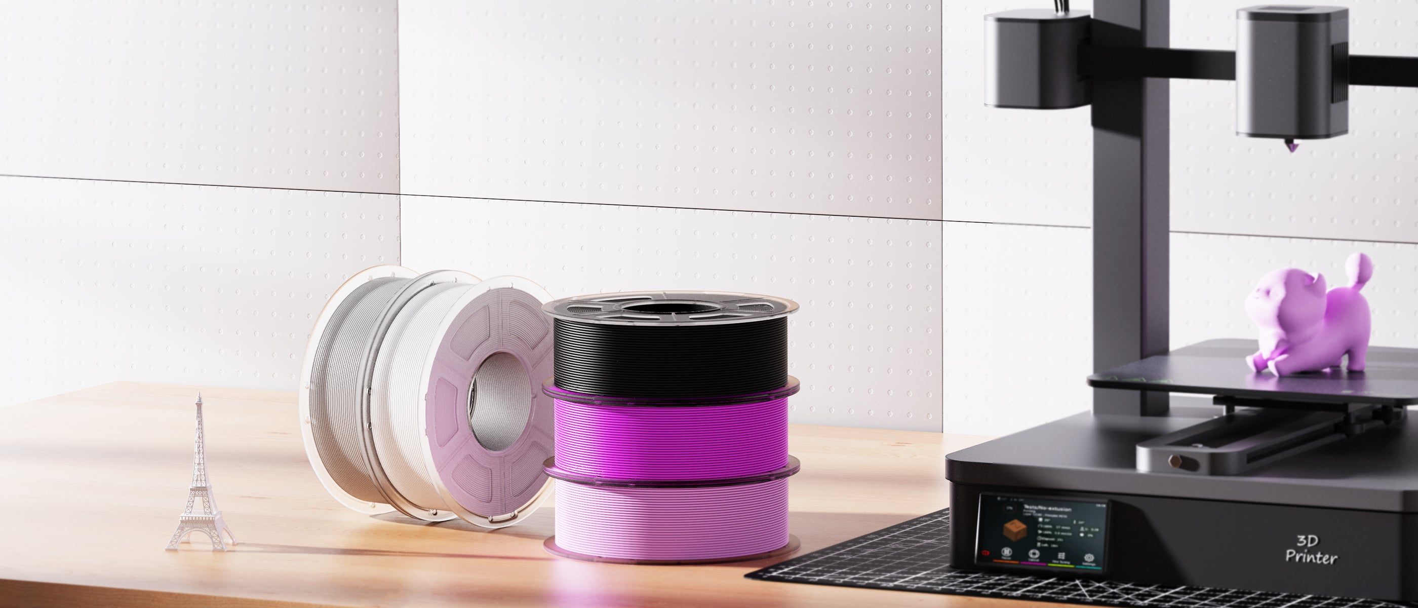 This 3D printing filament has 5 colors for you to choose from, which are black, white, gray, lilac purple and violet. You can choose any color you like and DIY to make special crafts and more.