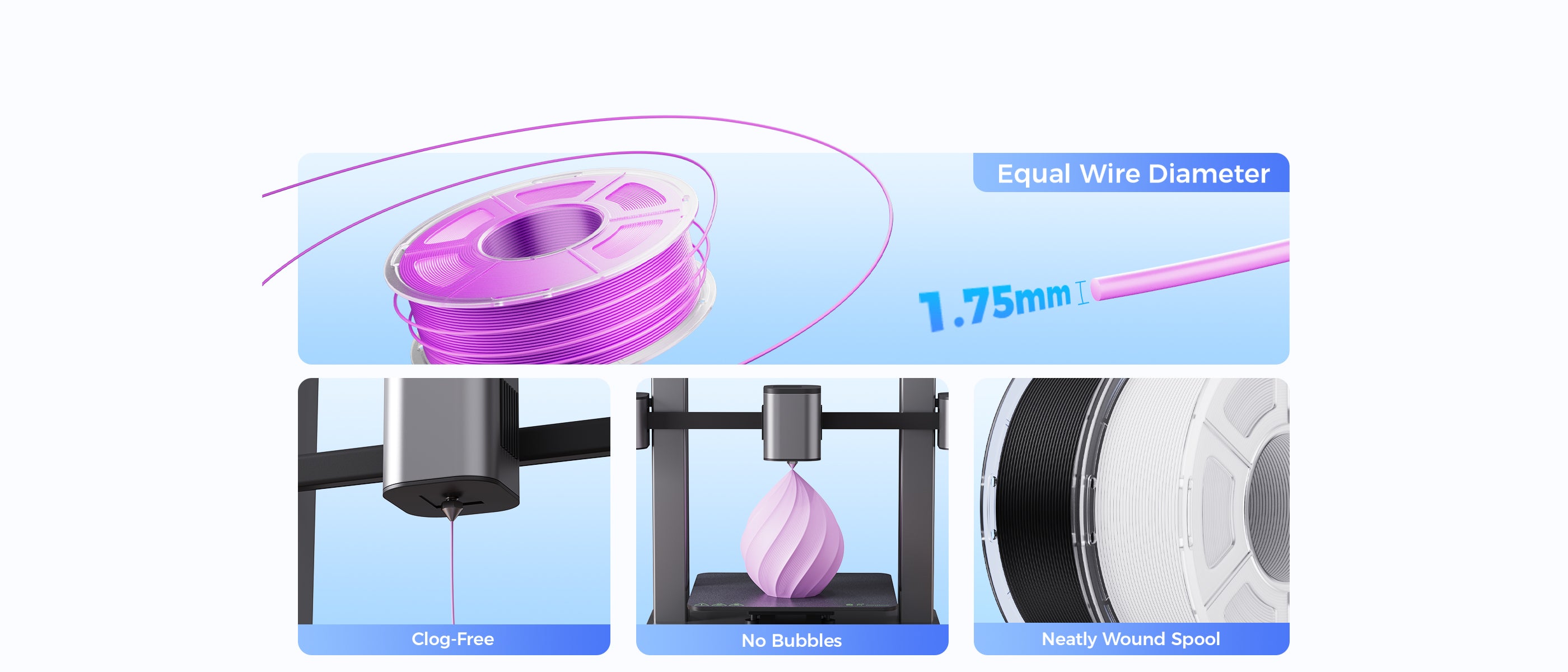 Our PLA+ filament has a diameter of 1.75mm±0.02mm with a small margin of error, offering wide compatibility with most FDM 3D printers on the market.