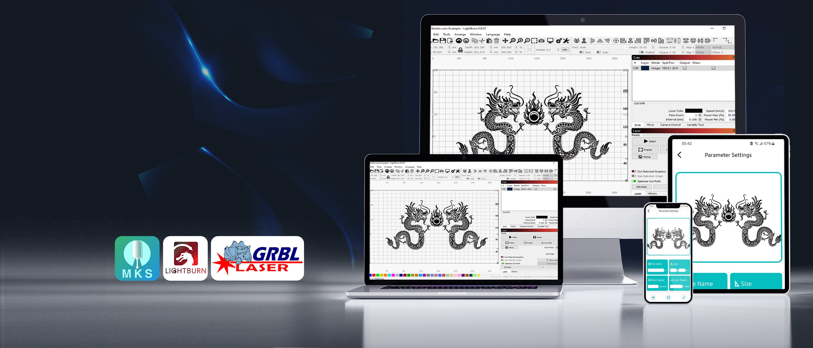 Software Support: MKSLaser APP / LaserGRBL / LightBurn