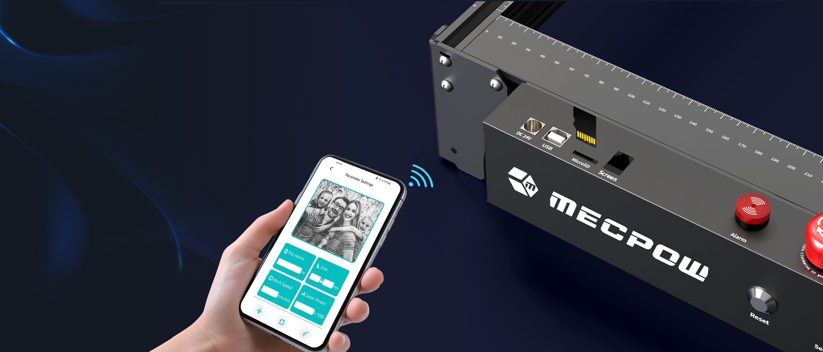 Revolutionize your engraving experience! The Mecpow X5 Pro supports offline operations—simply insert a TF card and manage the machine via smartphone WiFi connectivity using the MKSLaser app. Set your creativity free from the limitations of bulky computers.