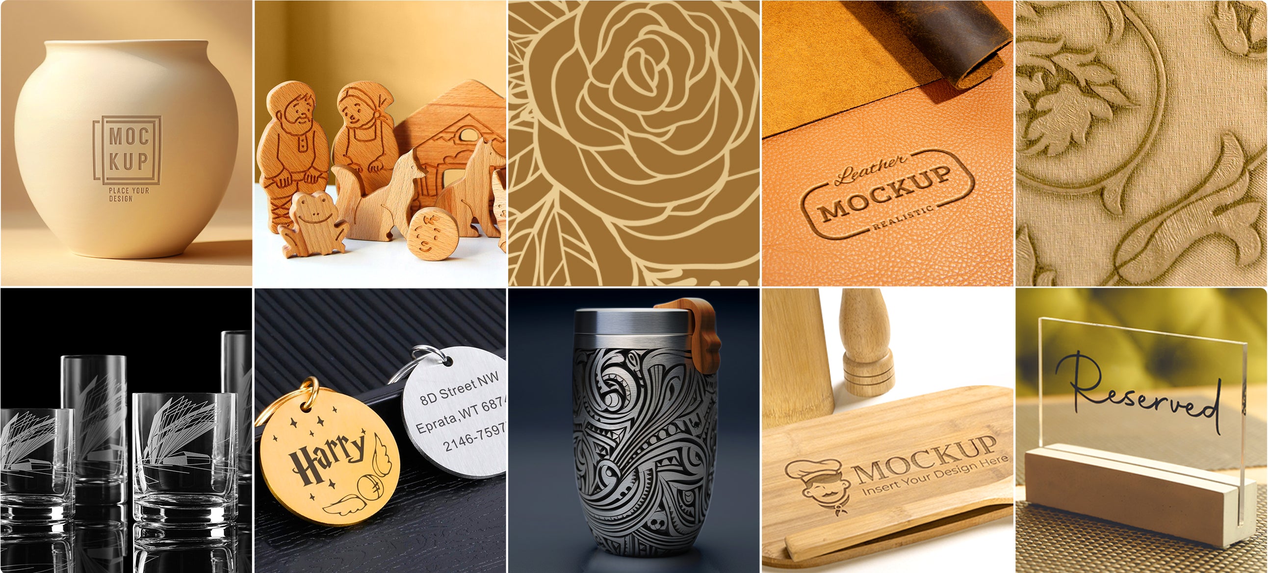 Materials for Laser Engraving: Wood, Acrylic, China, Fabric, Bamboo, Plastic Board, Leather, Fruit, Bread, etc.